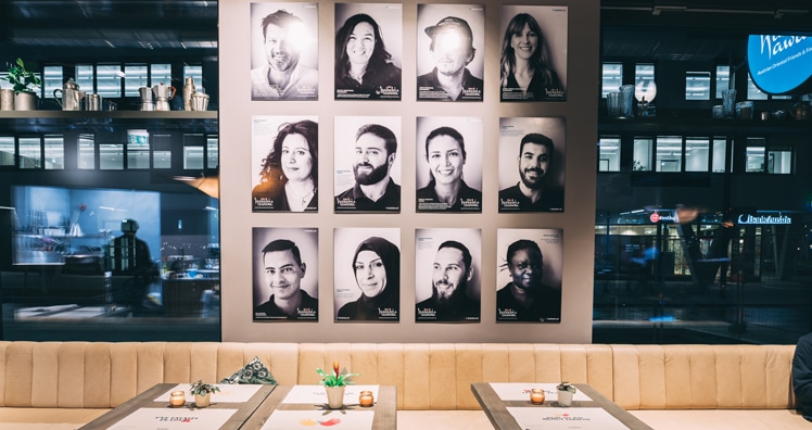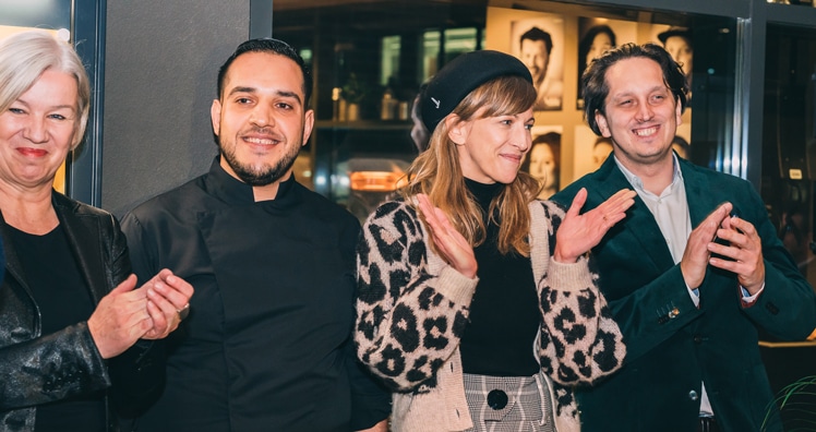 Habibi & Hawara Nordbahn-Geschäftsführerin Ulrike Plichta und Initiator und "Oberhawara" Martin Rohla begrüßten gemeinsam mit Küchenchef Hammoudi Aljassem die zahlreichen Gäste, Investoren und Unterstützer im neuen Restaurant. Aljassem, der 2016 als Küchenhilfe im ersten Habibi & Hawara Restaurant in der Wipplingerstraße seine österreichische Gastro-Karriere begann, führt als Rolemodel für die Ausbildungs- und Zukunftsperspektiven des Social Business das Küchenteam im neuen Restaurant im zweiten Bezirk.