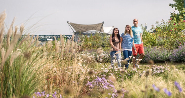 Sellinger: Insgesamt wurden 19.300 klimafreundliche, standortangepasste Stauden und Gräser gepflanzt. Mit variablen Blütenaspekten ernähren sie über die gesamte Vegetationsperiode zahllose Insekten und visualisieren natürliche Prozesse und jahreszeitliche Veränderungen. Wildtiere finden hier in unmittelbarer Nähe der Innenstadt Brut- und Rückzugsgebiete.