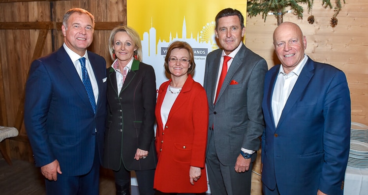 Bei der Vie:nna Brands 2019 und der anschließenden Club Cuvée Weihnachtsfeier mit besten Mayer vom Pfarrplatz Weinen und einem Gulasch der Gastronomie von Peter Dobcak sah sah man unter anderem Wirtschaftskammer-Präsident Walter Ruck, die Großbäckervertreter Kurt Mann und Irene Ströck, Martin Schipany, Leiter MA 53 Stadt Wien, den Almdudler-Geschäftsführer Gerhard Schilling, den Künstlerischen Leiter der Oper im Steinbruch Daniel Serafin, Mime und Theaterdirektor Adi Hirschal, den COO von Frey Retail Stefan Gubi, die Prokuristin der Wiener Stadthalle Magdalena Hankus, Herbert Rieser von cafe+co, Hanni und Karl Kolarik vom "Schweizerhaus", Unternehmer Rudi Semrad, Bettina Fischer vom Weingut "Mayer am Pfarrplatz", Hans Peter Spak von Hink Pasteten sowie die Personalberaterin und Lindlpower-Chefin Manuela Lindlbauer.
