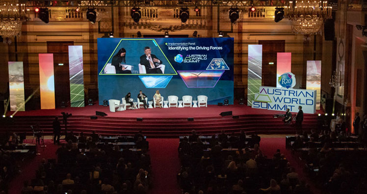 Beim Austrian World Summit 2018 wurde das Bühnenbild mit LED-Stelen aufgelockert. © Habegger