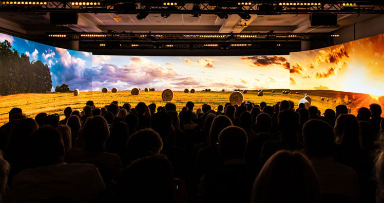 Ein besonderer Indoor-Einsatz für LED sind Wände, die den ganzen Raum einrahmen. "Für eine Veranstaltung haben wir einen Raum mit curved Displays – also gebogenen LED-Wänden – rundherum verkleidet und bespielt. Das Publikum hatte z. B. das Gefühl, mitten in einer Küche zu sitzen", erzählt Schagerl. So kann man die Gäste wunderbar an verschiedene Orte "versetzen", zum Beispiel in eine Firma, eine Wiese oder auf einen Berg.