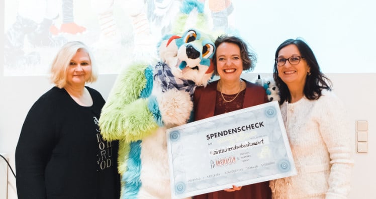 Beim anschließenden Get-together mit Spezialitäten aus der Küche von Gutenbergs Eventlocation, die ein Teil des Unternehmensverbunds von Bösmüller Print Management ist und in deren Räumlichkeiten die Druckerei vor 42 Jahren gegründet wurde, hatten die Gäste die Möglichkeit, ihre Geldbörsen für das beeindruckende Charity-Projekt „Furries for Kids” zu öffnen, durch das Waisenkindern Lebensfreude geschenkt wird. Mag. Manuela Samek und Ing. Andreas Bartl begeisterten als Mitglieder der Geschäftsführung von „Furries for Kids“ alle Anwesenden und so konnte am Ende des Abends der stolze Betrag von €1.700 übergeben werden.