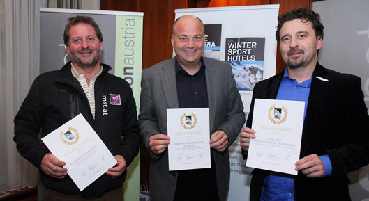 Im Rahmen des Kamingesprächs "Ski fahren? Aber sicher!" erfolgte im Wiener Hotel Erzherzog Rainer die Verleihung der Ski Guide Austria Kreativ Awards für besonders innovative und kreative Leistungen sowie Alleinstellungsmerkmale an ausgewählte Skigebiete. Bei der Verleihung mit dabei: Markus Merz - Semmering - Hirschenkogel Bergbahnen G.m.b.H., Christoph Eisinger - Ski amadé, Harald Bauer - Imst Tourismus und viele mehr.