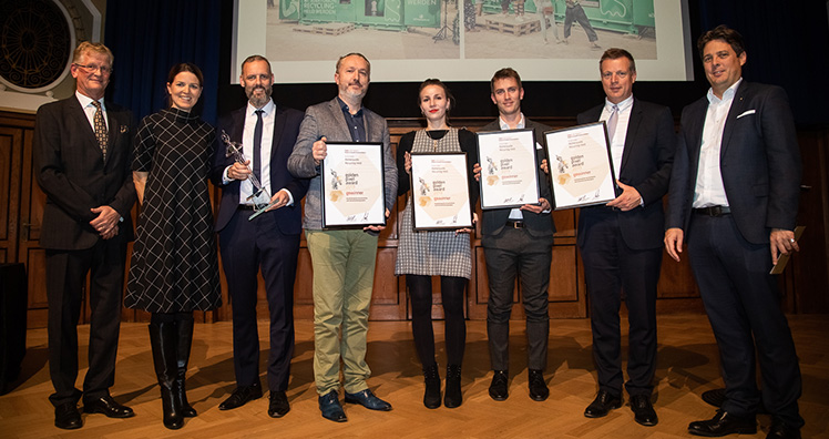 Kategoriensieg mit dem Römerquelle Recycling-Held mit Gewista, MediaCom & Römerquelle © Golden Pixel Award/Franz Reiterer