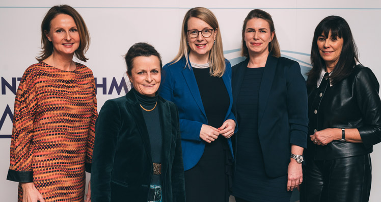 Die Vorstandsdirektorin der Wiener Städtischen, Christine Dornaus, und Margarete Schramböck, Bundesministerin für Digitalisierung und Wirtschaftsstandort, der Vorsitzende der Geschäftsführung der Presse Herwig Langanger sowie Martha Schultz und Sandra Trotzowsky, Chief Sales Officer DACH der Lowell Group, übergaben die exklusive Trophäe an die glücklichen Gewinnerinnen.