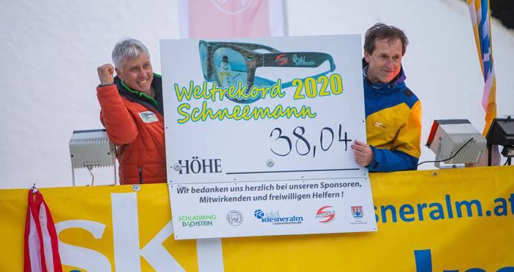 Die bisherige Höchstmarke lag bei 37,21 Metern, dieser Schneemann wurde 2008 im US-Bundesstaat Maine errichtet. "Jetzt haben wir den Rekord nach mühsamen 1.200 Arbeitsstunden endlich geknackt", freut sich Peer. Genau 38,04 Meter misst nun der eisige Gigant in der Steiermark, der über 40 Tage lang mit Baggern, Schneefräsen, Schaufeln und Kränen aufgebaut wurde.