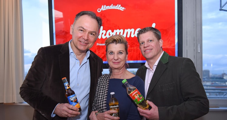Mit den Worten "Alm ist, wo wir sagen" eröffneten Sprudelfabrikant Heribert Thomas Klein und seine Schwester Michaela augenzwinkernd das gesellige Dudeln im Hochhaus Herrengasse. Gemeinsam mit den beiden Eigentümern des österreichischen Familienunternehmens Almdudler begrüßte Geschäftsführer Gerhard Schilling zahlreiche Medien sowie Vertreter der österreichischen Foodie-Szene, um auf das erfolgreiche Jahr 2019 zurückzublicken und die Neuheiten 2020 zu präsentieren. Vorfreudig blickt man auf die kommenden Monate, insbesondere da mit der neuen Sorte Almdudler Hanf ein wirklich entspannendes Produkt auf den Markt gebracht wird.