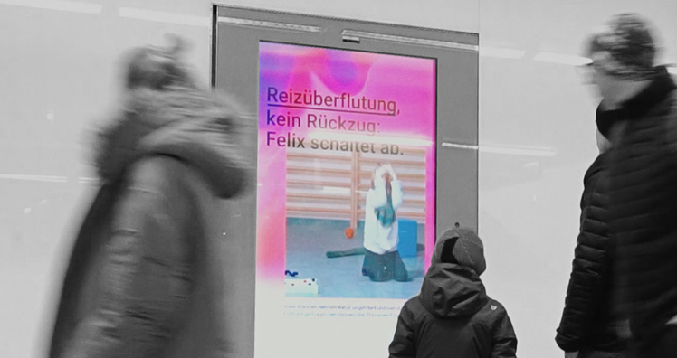 Aufgrund fehlender Reizfilterung nehmen Autisten ihre Umwelt viel intensiver wahr und reagieren dementsprechend sensibel auf äußere Einflüsse wie Geräusche und Körpernähe. Diese Hypersensibilität hat Tunnel23 in ihrer neuesten DOOH-Kampagne zum Thema gemacht.
