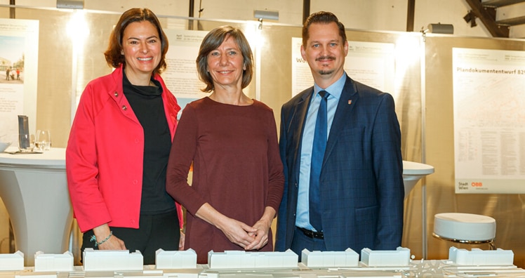 Die ÖBB und Stadt Wien haben am Donnerstag das neue Stadtentwicklungsprojekt Neues Landgut vorgestellt. Birgit Hebein, Vizebürgermeisterin und Planungsstadträtin, Marcus Franz, Bezirksvorsteher Favoriten, und die Vorständin der ÖBB-Infrastruktur AG Silvia Angelo stellten erste Details vor: zwischen der Landgutgasse, der Laxenburger Straße und den Bahntrassen entsteht bis 2026 ein neuer Stadtteil im 10. Bezirk.