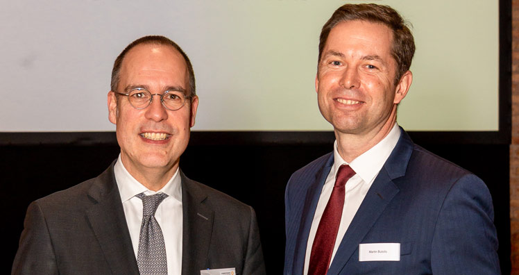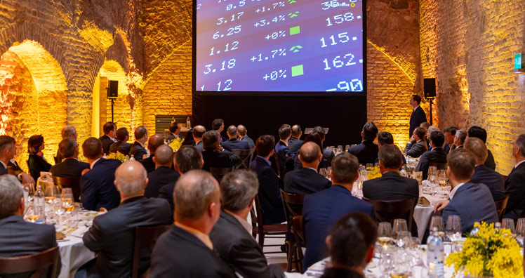 Kernthema des Abends war aufgrund der aktuellen Ereignisse "Weltwirtschaft und Finanzmärkte im Zeichen von Corona und Protektionismus". Dazu präsentierte Jörg Krämer, Chefvolkswirt der Commerzbank aus Frankfurt, als Key Note Speaker einen Vortrag mit anschließender Diskussion. Gemäß Krämer dürfte das Coronavirus die Industrierezession in Deutschland um weitere Monate verlängern. Unternehmen insb. aus den Bereichen Automobilbau, Chemie und Pharma dürften zunehmend unter ausbleibenden chinesischen Zulieferungen leiden. Der Lieferketten-Effekt wird daher das Wirtschaftswachstum in den beiden ersten Quartalen 2020 reduzieren.