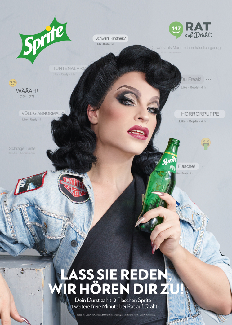 Sprite hat bereits im Vorjahr das Problem von Mobbing und Hass im Netz aufgegriffen. Sprite ermutigt unter dem Motto "Lass sie reden, wir hören zu" gemeinsam mit heimischen Influencern Betroffene bei Schikanen und Quälereien cool zu bleiben und den Hatern mit Humor und Selbstbewusstsein zu begegnen.