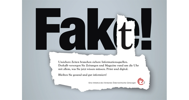 "Fakt statt Fake" lautet dabei die Botschaft der von Demner, Merlicek & Bergmann (DMB) entwickelten Kampagne. "Unsichere Zeiten brauchen sichere Informationsquellen. Deshalb versorgen Sie Zeitungen und Magazine rund um die Uhr mit allem, was Sie jetzt wissen müssen. Print und digital. Bleiben Sie gesund und gut informiert," erinnert der VÖZ an die Bedeutung von Qualitätsmedien im Kampf gegen Falschinformationen.