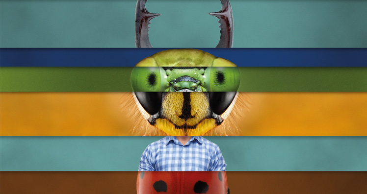 Für die Kampagne holte Ideenladen diese Nützlinge in all ihrer Vielfalt vor den Vorhang. Unterstützt durch die Farbgestaltung entstand auf diese Weise ein buntes Sujet nach Art der Kinder-Klappbücher, bei denen Tiere unterschiedlich miteinander kombiniert werden können.