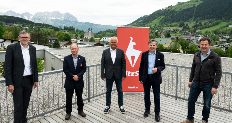 Klaus Winkler (Aufsichtsratsvorsitzender), Walter Astl (Vorstand), Christian Wörister, Anton Bodner (Vorstandsvorsitzender) und Andreas Hochwimmer (Zentralbetriebsrat). © Bergbahn AG Kitzbühel
