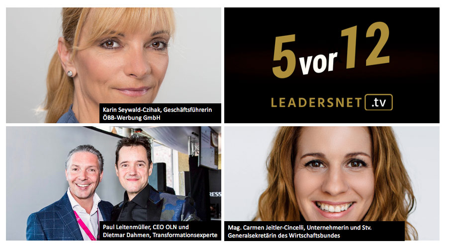 In Folge 38 diskutierten im LEADERSNET-Live-Talk "5 VOR 12" die ÖBB Werbung-Geschäftsführerin Karin Seywald-Czihak Nationalratsabgeordnete, Unternehmerin und stellvertretende Generalsekretärin des Wirtschaftsbundes Carmen Jeitler-Cincelli welche wirtschaftlichen Impulse jetzt notwendig sind und warum diese vor allem für Frauen wichtig sind, damit sie nicht aus dem Arbeitsmarkt rausfallen.