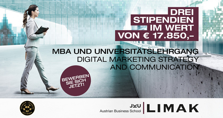 - 2 x Universitätslehrgang Digital Marketing Strategy and Communication im Wert von je € 3.450,- * (Programmkosten € 6.900,–*)