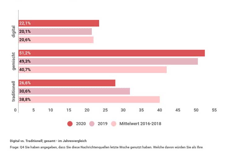 Die ORF-Nachrichten werden von 65,6 Prozent der Befragten als vertrauenswürdig eingeschätzt, darauf folgen der Standard (61,4 Prozent), die Presse (59,9 Prozent), Servus TV (55,5 Prozent), Kurier (51,5 Prozent), Puls 4 (49,3 Prozent) und die Kleine Zeitung (46,2 Prozent).