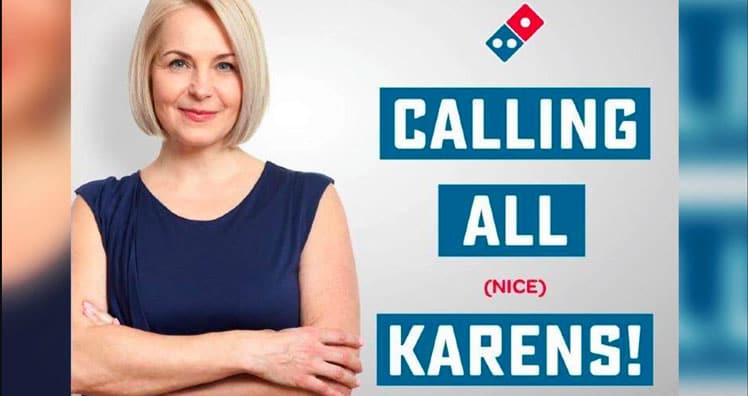 Der Neuseeland-Ableger von Domino's wollte "netten Karens" eigenen Angaben zufolge eine Pause von der „ganzen Negativität" geben. Mit den Worten "An alle (netten) Karens" verkündete die Fast-Food-Kette das Werbeangebot auf ihren australischen und neuseeländischen Social-Media-Kanälen. Jene Personen namens Karen sollten Domino's in 250 Worten erzählen, warum gerade sie zu den "Netten" zählen. Der Name sei zu einem Synonym für jemanden, der "selbstsüchtig ist und sich gerne beschwert", so der Marketingchef der Region, Allan Collins, über das Angebot. Was einst ein witziges Meme war, sei inzwischen zu einer ziemlichen Beleidigung geworden, so Collins. "Naja, heute nehmen wir den Namen Karen zurück."