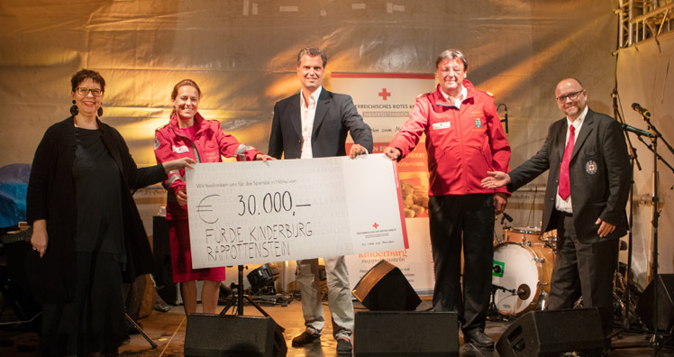 Die Burg Rappottenstein war vor wenigen Tagen Schauplatz eines besonderen Events: Rund 130 Gäste folgten der Einladung von Organisatorin und Kinderburgbotschafterin Christine Marek, Burgherr Benedikt Abensperg und Traun und dem Roten Kreuz Niederösterreich zum Open Air-Benefizkonzert.