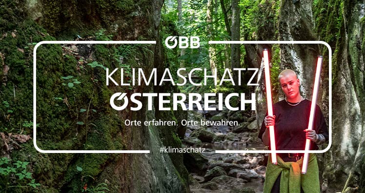 Zum Auftakt der Klima-Kampagne inszeniert ein 40-Sekünder die Schönheit Österreichs und soll die Menschen dazu animieren, die Zukunft neu zu denken. Über den Sommer wird das Thema Klimaschutz aus den Augen der verschiedenen Teilmärkte der ÖBB, ÖBB Infra, Rail Cargo, Employer Branding und Personenverkehr betrachtet. Ein Highlight stammt von der Künstlerin Veronika König aka Farce, die die Johannesbachklamm auditiv erlebbar gemacht hat.
