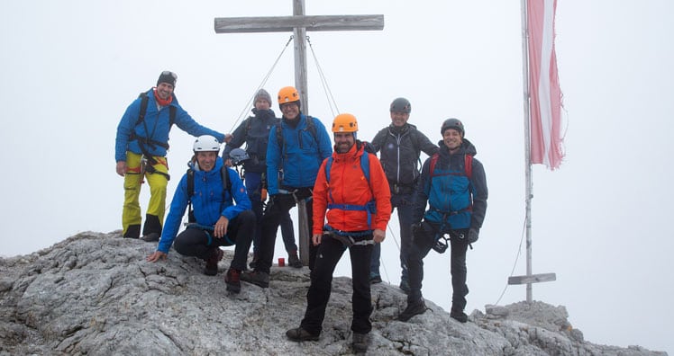 Gemeinsam mit Drei CEO Jan Trionow bestiegen Österreichs erfolgreichster Olympiasportler Felix Gottwald, der Chef der österreichischen Sporthilfe Gernot Uhlir, Matthias Schattleitner, Geschäftsführer Schladming-Dachstein Tourismusmarketing und Herbert Raffalt, Bergführer und Naturfotograf den Gipfel. Das Gespräch nach der Gipfel-Ankunft stand unter dem Motto "Mit Weitblick in die digitale Zukunft".