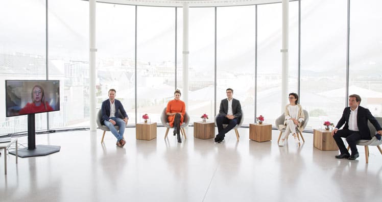 Unter Leitung von Presse Chefredakteur Rainer Nowak diskutierten Christine Antlanger-Winter, Country Director Google Österreich, Handelsverband-CEO Rainer Will, die Co-Gründerin der Vollpension Hannah Lux und Giesswein-CEO Markus Giesswein in einem Expertengespräch die Chancen der Digitalisierung für österreichische KMU in aktuell unsicheren Zeiten und wie digitales Know-how zum wirtschaftlichen Erfolg beitragen kann.