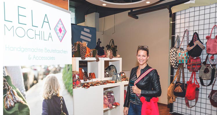 Der Ursprung dieser Handwerkskunst liegt im Norden Kolumbiens, „la Guajira" genannt. In dieser Gegend leben die Wayuu Indianer, die von Generation zu Generation dieses Handwerk weitergeben. Die Wayuu Frauen verwenden drei Techniken um eine Mochila herzustellen: weben, knüpfen und häkeln. Je nach Musterung und Aufwand benötigen sie 3 bis 5 Tage für eine Tasche", erklärt Carina Zekely.