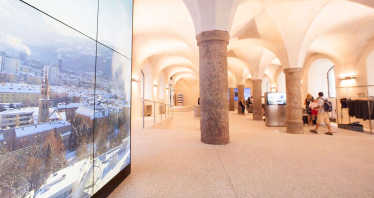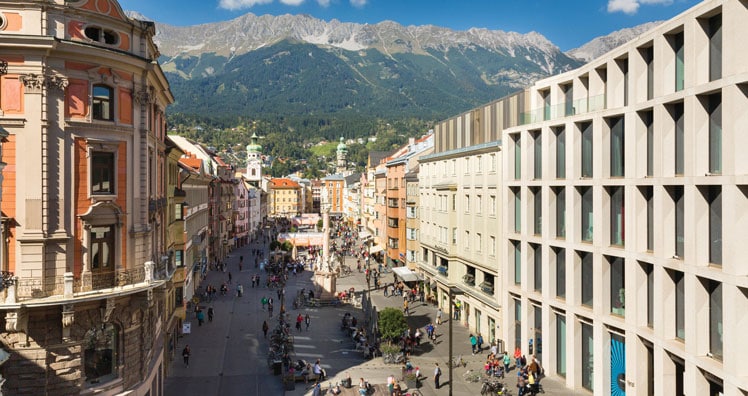 Auch Shopping lässt sich in der Tiroler Hauptstadt in architektonisch hochinteressantem Ambiente erledigen, und zwar im Kaufhaus Tyrol und den Rathaus Galerien. Internationale Stararchitekten wurden engagiert, um die beiden Kaufhäuser direkt an der Maria-Theresien-Straße zur entwerfen: Dominique Perrault für die Rathaus Galerien und Sar-Architekt David Chipperfield mit dem Neubau des altehrwürdigen Kaufhaus Tyrol.