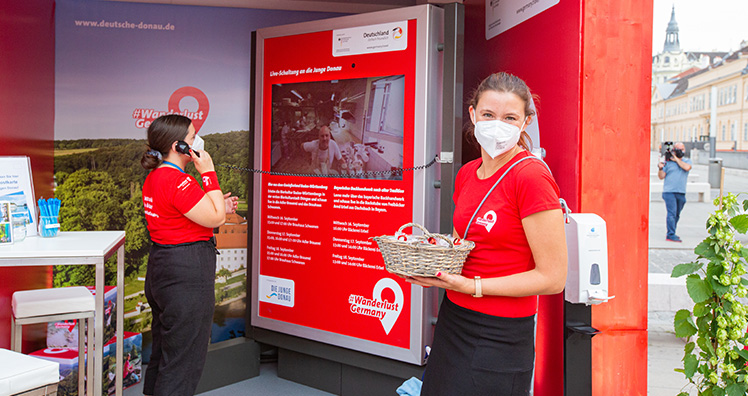Die zweite Kampagne, die ich ansprechen möchte, ist die Deutschland Werbung, bei der wir ein beeindruckendes virtuelles Erlebnis hatten, dass man trotz Grenzschließungen und Reisebeschränkungen, gerne Blicke ins Nachbarland wirft. Direkt vor dem Haupteingang des Museumsquartiers konnten sich Passanten ein Bild Deutschland als Urlaubsland machen und sich über die vielfältigen Destinationen und deren Highlights informieren. Unter der Einhaltung sämtlicher coronabedingter Schutzmaßnahmen standen eine Chill-Area, eine Silent Disco, eine Kletterwand sowie digitale City Lights der Gewista zur Verfügung. Via dieser City Lights, die in gebrandeten Containern platziert waren, konnte je ein Passant an unterschiedlichsten Liveschaltungen zu touristischen Attraktionen mit charmantem Lokalkolorit teilnehmen.