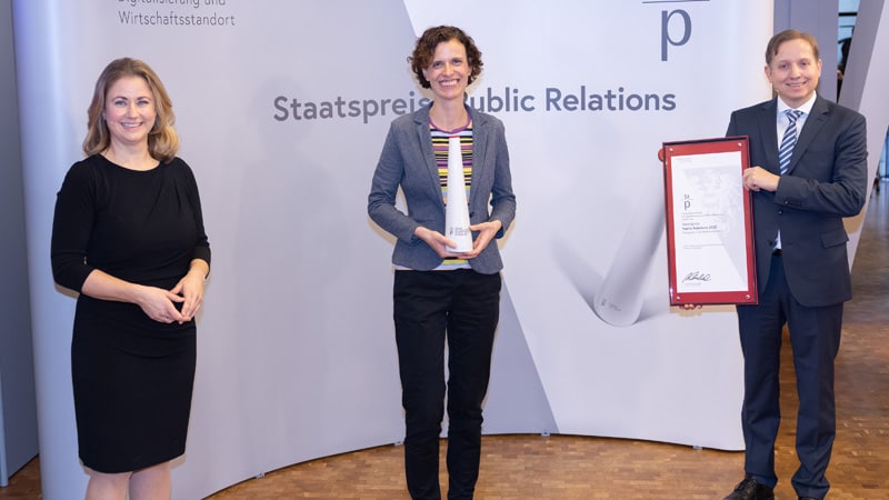 "Der Staatspreis PR wird in herausfordernden Zeiten verliehen. Aber gerade diese Zeiten machen uns bewusst, wie wichtig Kommunikation ist, um gemeinsam gut durch diese Krise zu kommen. Damit gewinnt gerade jetzt professionelle PR an Bedeutung. Exzellente Öffentlichkeitsarbeit fungiert aber nicht nur als Krisenhelfer, sie stärkt auch den Wirtschaftsstandort Österreich insgesamt", so Michael Esterl, Generalsekretär im Digitalisierungsministerium, der die Preise an die Ausgezeichneten verlieh.
