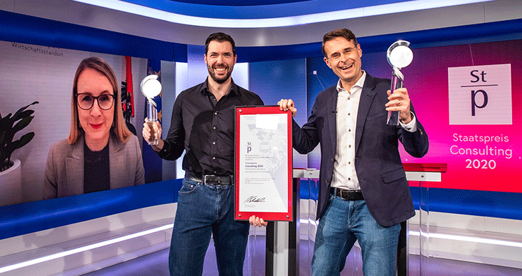 Das Bundesministerium für Digitalisierung und Wirtschaftsstandort hat den Staatspreis Consulting vergeben. Als Siegerprojekt 2020 wurde "hex.ai – Suchen und Optimieren: Wie Künstliche Intelligenz Planungsprobleme in der Bahnlogistik lösen kann" von der Hex GmbH und die Rail Cargo Austria ausgezeichnet.