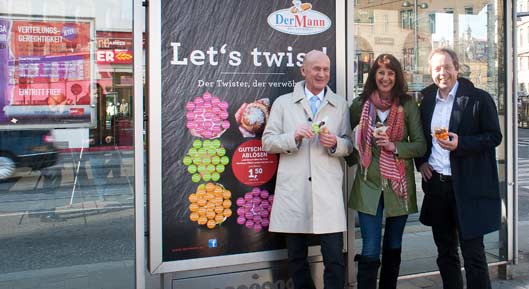 "Mit unserem Twister haben wir ein neues, hervorragendes Produkt entwickelt, das einen außergewöhnlichen Auftritt verdient – durch die City Light-Sonderwerbestellen kann dieser Auftritt entsprechend in Szene gesetzt werden", so Kurt Mann. Um auf die süße Produktneuheit (Butterplunderteig mit einer Fülle aus Kokos, Mohn oder Nuss) aufmerksam zu machen, setzen "Der Mann" und Gewista auf Audio-Effekte und am City Light angebrachte Gutscheine. Integrierte Bewegungsmelder starten den Twist sobald ein Passant sich dem Werbeträger nähert. "Der Twist(er) am City Light zeigt, wie vielseitig sich das Medium City Light nutzen lässt. Bewerbung und Sampling-Aktion können an ein und demselben Ort wirkungsvoll und effizient durchgeführt werden. Wichtigster Erfolgsfaktor für die Twister-Aktion ist die Möglichkeit der punktgenauen Standort-Buchung – die gewählten City Lights befinden sich alle in unmittelbarer Nähe zu den Filialen von Der Mann", so Andrea Groh, Director of Sales Gewista. (red)