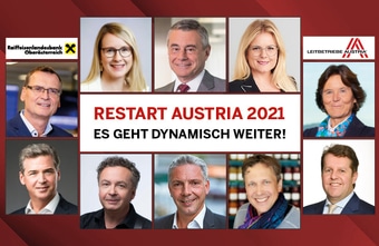 "Restart Austria" heißt es am kommenden Mittwoch, 27. Jänner, mit hochkarätigen Gästen wie Digitalisierungsministerin Schramböck, "Kurier"-Chef Kralinger, Raiffeisenlandesbank-OÖ-Chef Schaller und ÖBAG-Direktorin Catasta.