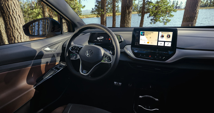 Beim Fahren im Stadtverkehr und dem Einparken unterstützen zudem zahlreiche Assistenzsysteme. Serienmäßig ist beim ID.4 der Notbremsassistent „Front Assist“ dabei. Damit kann das Auto Fußgänger und Hindernisse erkennen und eine drohende Kollision verhindern. Auch die serienmäßige akustische Einparkhilfe ist hilfreich und bringt zudem eine automatische Rangier-Bremsfunktion mit. Zudem kommt der ID.4 mit etwa 10,2 Meter Wendekreis aus – verblüffend wenig für seine Größe.