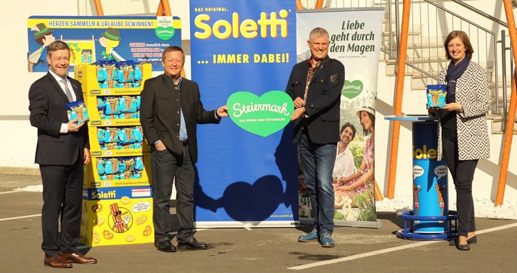 Anfang 2021 haben sich zwei echte Steirer auf eine Zusammenarbeit geeinigt: Soletti – die Salzstangerl werden seit über 70 Jahren im steirischen Feldbach produziert – und Steiermark Tourismus. Ab sofort ziert das "Grüne Steiermark"-Herz die Soletti-Salzstangerl-250-Gramm-Packung und Soletti-Fans können durch das Ausschneiden und Sammeln der Herzen auf der Packung monatlich einen Familienurlaub in der Steiermark gewinnen.