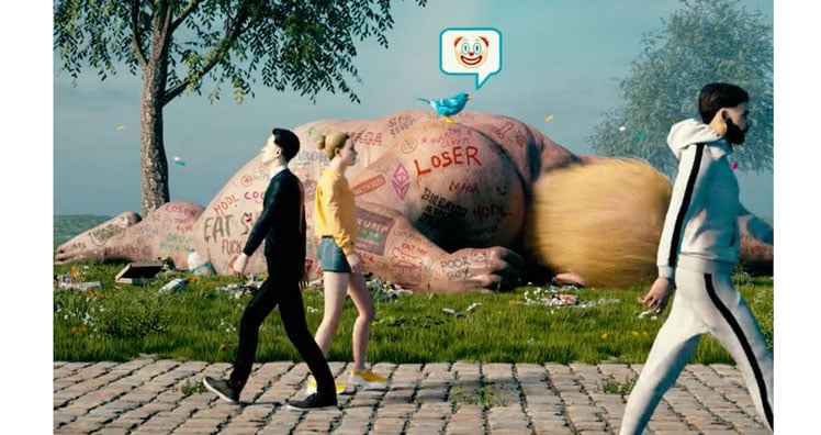 Das 10-Sekunden-Video des Krypto-Künstlers Mike Winkelmann, der unter dem Künstlernamen "Beeple" bekannt ist, zeigt den nackten und mit Graffiti beschmierten, Körper des ehemaligen US-Präsidenten und Verlierers der US-Präsidentschaftswahl 2020, Donald Trump, der auf einer Wiese am Wegesrand liegt. Auf seinem Körper ist unter anderem auch das Wort "Loser" zu lesen. Passanten gehen teilnahmslos an seinem regunglosen Körper vorbei, einzig ein Vogel nimmt ihn wahr, landet auf seinem Rücken und macht sich offensichtlich über ihn lustig, indem er ein Clown-Emoji zwitschert.