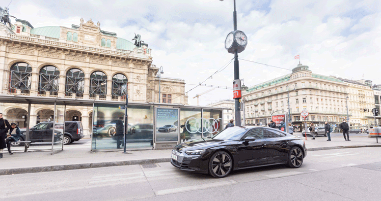 Audi hat im Rahmen seiner aktuellen Kampagne im März den neuen Audi RS e-tron GT beworben und dabei auf einen Out-Of-Home-Mediamix der Gewista gesetzt, um den jüngsten Gran Turismo der Audi-Familie einer breiten Öffentlichkeit vorzustellen.