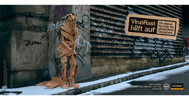 Die VinziRast ist eine der wichtigsten Einrichtungen für obdachlose Menschen in Wien. In der VinziRast-Notschlafstelle finden Gäste ein Bett für die Nacht, Zeit und Zuwendung – und manche von ihnen werden Bewohner in einem der VinziRast-Wohnprojekte. Um auf die wichtige gesellschaftliche Funktion der VinziRast aufmerksam zu machen, und mehr Awareness für die Bedürfnisse obdachloser Menschen zu schaffen, hat die Kreativ-Agentur Heimat Wien gemeinsam mit der VinziRast eine aufsehenerregende, künstlerische Kampagne gestartet.