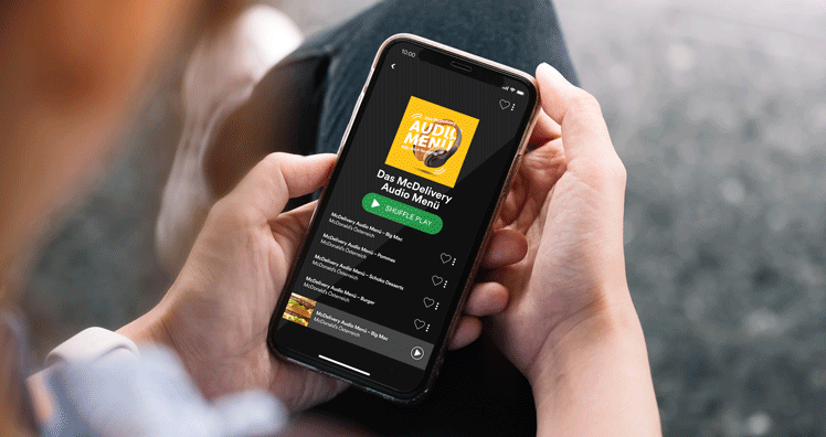 Unter dem Motto "Hör dich hungrig" macht McDonald's Österreich auf Social Media und Spotify mit einer Audio Meditationsreihe Gusto auf eine Bestellung beim Zustellservice McDelivery. Der eigens dafür produzierte Spotify-Podcast macht bekannte McDonald's Produkte wie Big Mac, Pommes, Cheeseburger und Schoko Muffin zu Hörerlebnissen. Hinter der Kampagne steht die McDonald's Social-Media-Agentur Virtue.