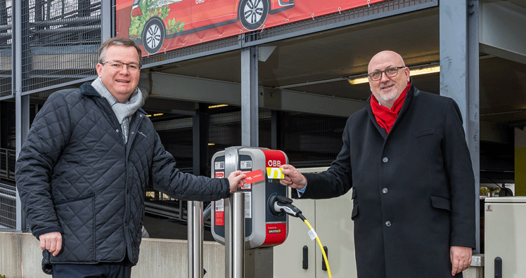Bereits an 50 Park&Ride-Standorten in ganz Österreich können BesitzerInnen einer ÖBB Ladekarte, ihr Auto bequem "auftanken". Andreas Matthä, CEO der ÖBB-Holding AG, freut sich über die Fertigstellung des 50. Standorts: "Die E-Ladestationen auf unseren Park & Ride-Anlagen an den Bahnhöfen, sind die perfekte Verbindung von zwei umweltfreundlichen Verkehrsmitteln: Bahn und E-Auto. Pendlerinnen und Pendler können mit ihrem Elektroauto die erste und letzte Meile nachhaltig zurücklegen und gleichzeitig die E-Ladestationen rund um den Bahnhof nutzen. Reisende ohne einen eigenen Wagen kommen mit einem E-Auto aus unserer Rail & Drive-Flotte zu ihrem Ziel. Damit schließen wir die grüne Mobilitätskette – bequem und klimaschonen zugleich."