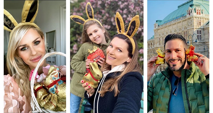 Auch zahlreiche Promis haben sich in den letzten Tagen einmal mehr als Schokofans geoutet und sich gemeinsam mit ihren Familien auf Goldhasensuche begeben: Doppel-Olympiasiegerin Michaela Dorfmeister startete ihre Suche nach dem Lindt Goldhasen gemeinsam mit Tochter Lea am PC, Choreograf Alamande Belfor, suchte und performte mit seiner Familie bei den Online Spielen und auch Schauspielerin Maxi Blaha mit ihrem Sohn Mucki und Kabarettistin Caro Athanasiadis mit ihren beiden Kindern waren mit von der Partie. Die Beachvolleyballgrößen Clemens Doppler und Oliver Stamm nahmen die virtuellen Challenges sportlich und sammelten fleißig Goldhasen.