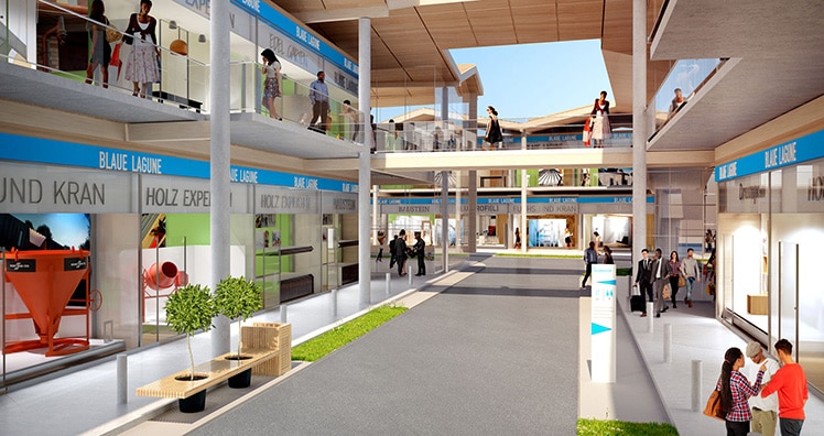 Die Blaue Lagune will zum Point of Sale für die Bauprodukteindustrie, Ausstattungs- und Einrichtungsbranche sowie Immobilienwirtschaft werden. Im neuen Bauzentrum können Unternehmen eigene Showrooms anmieten und als Verkaufsfläche nutzen.
