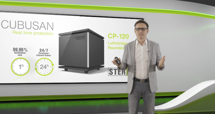 Steininger: Der Cubusan ist ein Luftentkeimungsgerät und beseitigt mit kaltem Plasma bis zu 99,99 Prozent aller Bakterien, Pilzsporen und Viren – einschließlich SARS-Cov-2. Ein einziger dieser lediglich 19 x 19 x 19 cm großen Würfel kann bis zu 120 m³ Luft reinigen. Dank seiner hohen Wirkleistung ist der Cubusan "Made in Austria" für den Einsatz in all jenen Räumen prädestiniert, in denen viele Menschen zusammentreffen.