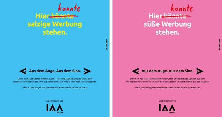 Die IAA (International Advertising Association) Austria hat ihre neue Jahreskampagne präsentiert, mit der man gegen drohende Werbeverbote auftreten möchte. Konkret geht es um geplante Werbeeinschränkungen im Lebensmittelbereich (LEADERSNET berichtete).