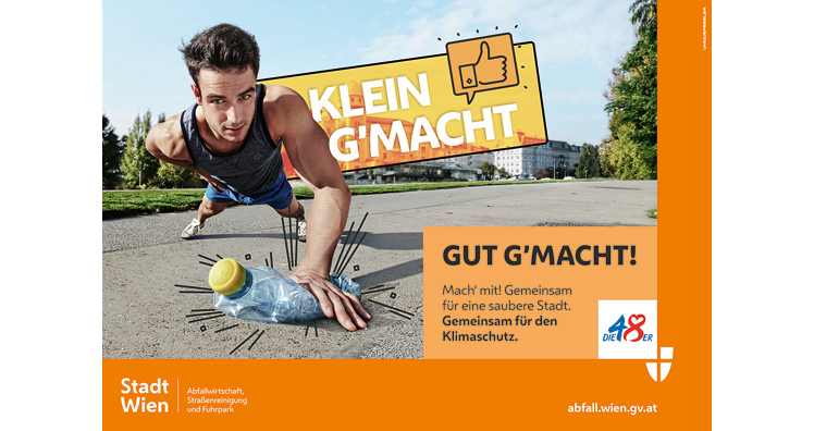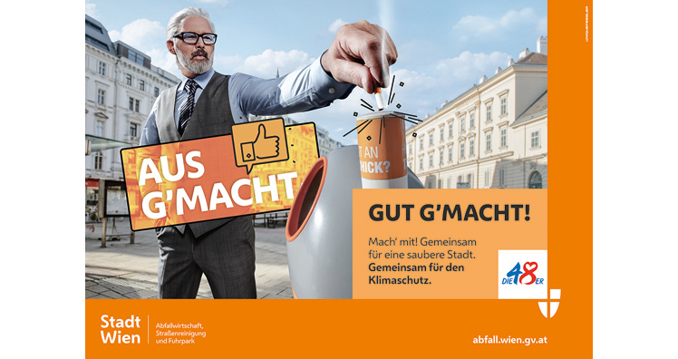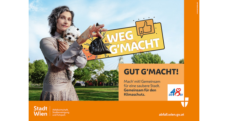 Die MA 48 (Abteilung Abfallwirtschaft, Straßenreinigung und Fuhrpark) macht auch heuer wieder auf die Sauberkeitsegeln in Wien aufmerksam. Mit augenzwinkernden Sujets im typischen 48er-Stil werden die Wienerinnen und Wiener motiviert, ihren Beitrag zur Sauberkeit und zum Klimaschutz zu leisten. Dafür gibt es nicht nur Dank von der Umwelt, sondern auch von der MA 48, die sich mit einem motivierenden "Gut g'macht!" bedankt.