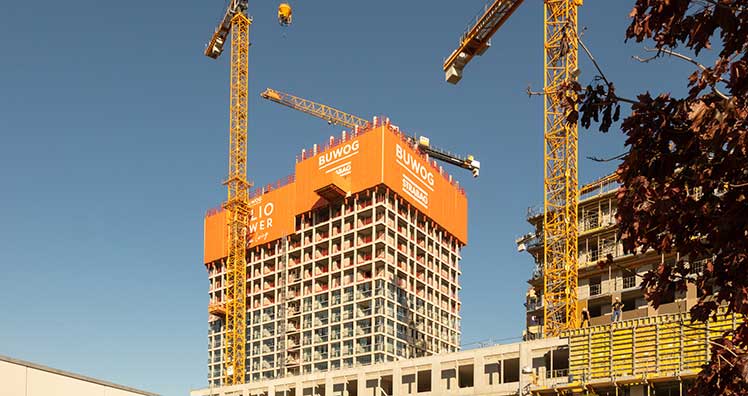 Der Bau des Helio Tower, eines der größten aktuellen Neubauprojekte der Buwog, hat die Halbzeit erreicht: Die ersten 17 der 34 oberirdischen Geschoße des ca. 110 Meter hohen Turms sind mittlerweile im Rohbau fertiggestellt, aktuell beträgt die Bauhöhe ca. 58 Meter. Insgesamt werden 173 Wohnbauinitiative-Wohnungen (WBI) mit 41 bis 124 Quadratmeter entstehen, die Fertigstellung des Gesamtobjekts ist für Ende 2022 geplant.