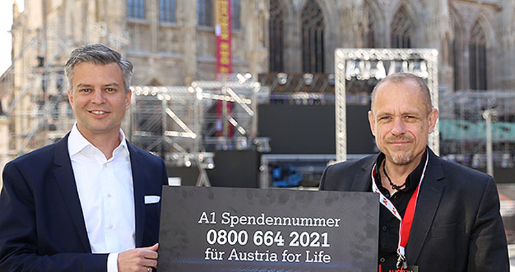 Am 28. Mai 2021, um 22.35 Uhr, soll die 90-minütige "Austria for Life“-Live-TV-Benefizshow, die in ORF 2 und auf Krone.tv übertragen wird, über die Bühne vor dem Wiener Stephansdom gehen. 50 prominente Künstler sämtlicher Genres von Musik, Theater bis hin zu Unterhaltung werden bei der märchenhaften Inszenierung mitwirken. A1-CEO Thomas Arnoldner und "Austria for Life"-Projektinitiator Gery Keszler überwachten am Wiener Stephansplatz den Bühnenaufbau für die spektakuläre Aufführung und die Aktivierung der A1-Spenden-Hotline bekanntzugeben.