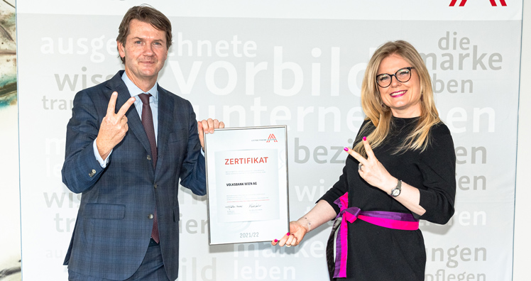 Um als Leitbetrieb ausgezeichnet zu werden, müssen Betriebe wirtschaftliche und finanzielle Stabilität aufweisen, einen fairen Umgang mit ihren Mitarbeiterinnen und Mitarbeitern pflegen und Wert auf Ressourcen- und Umweltschonung legen. Überdies ist eine starke Verankerung am Wirtschaftsstandort Österreich erforderlich. Die Volksbank Wien AG konnte diese Anforderungen im Rahmen eines umfassenden Screenings bereits zum zweiten Mal erfüllen und erhielt deshalb die Rezertifizierung. Überreicht wurde die Urkunde Anfang Juni in den Räumlichkeiten der Volksbank-Zentrale in Wien.