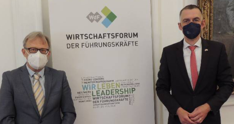 Zur ersten Präsenz-Veranstaltung des Wirtschaftsforum der Führungskräfte (WdF) im Haus der Industrie seit über einem Jahr lud das WdF den deutschen Botschafter in Österreich, S.E. Ralf Beste, zum Expertenfrühstück.