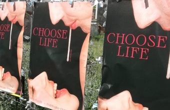 Sujet mit zwei Menschen, die provokant den eigenen Speichel austauschen, sorgt für Gesprächsstoff.